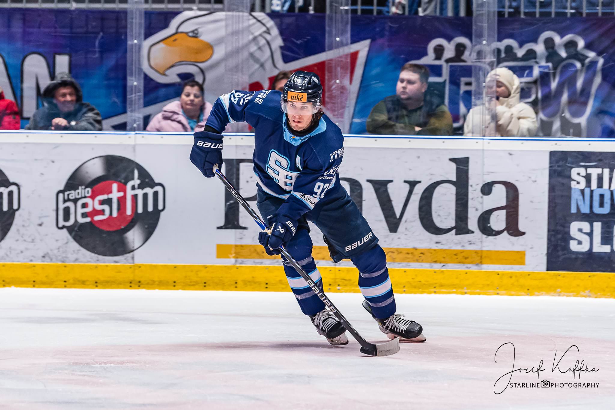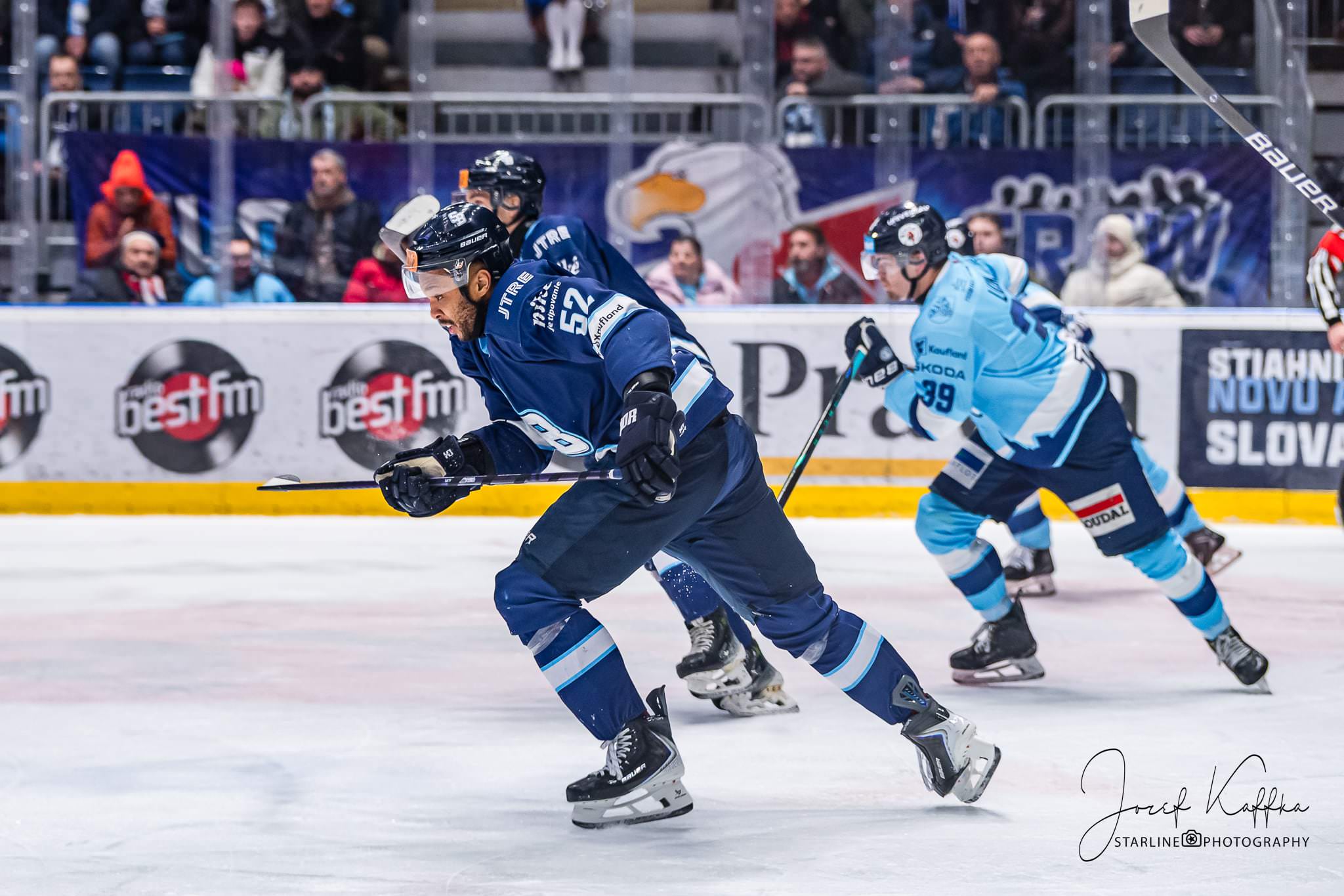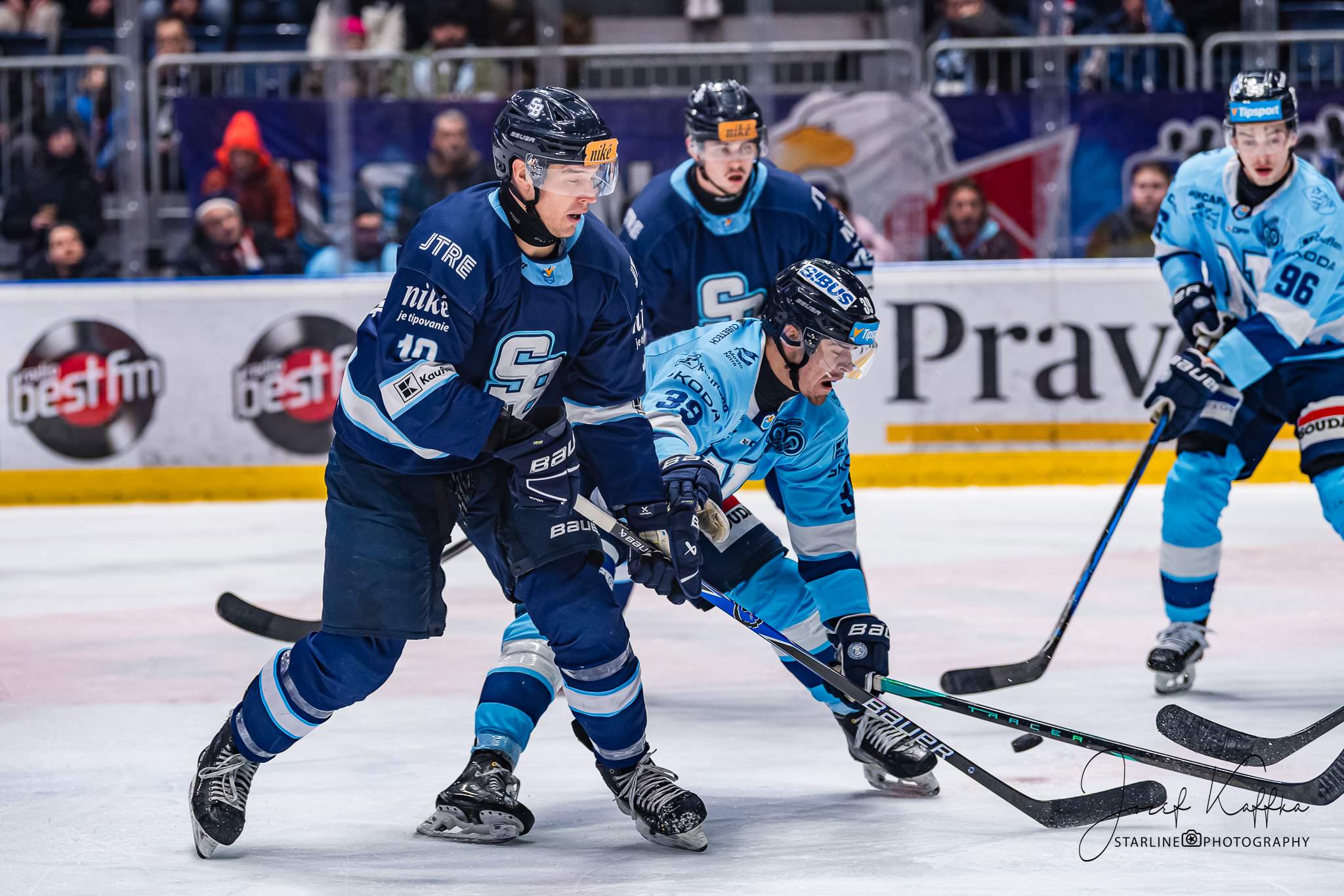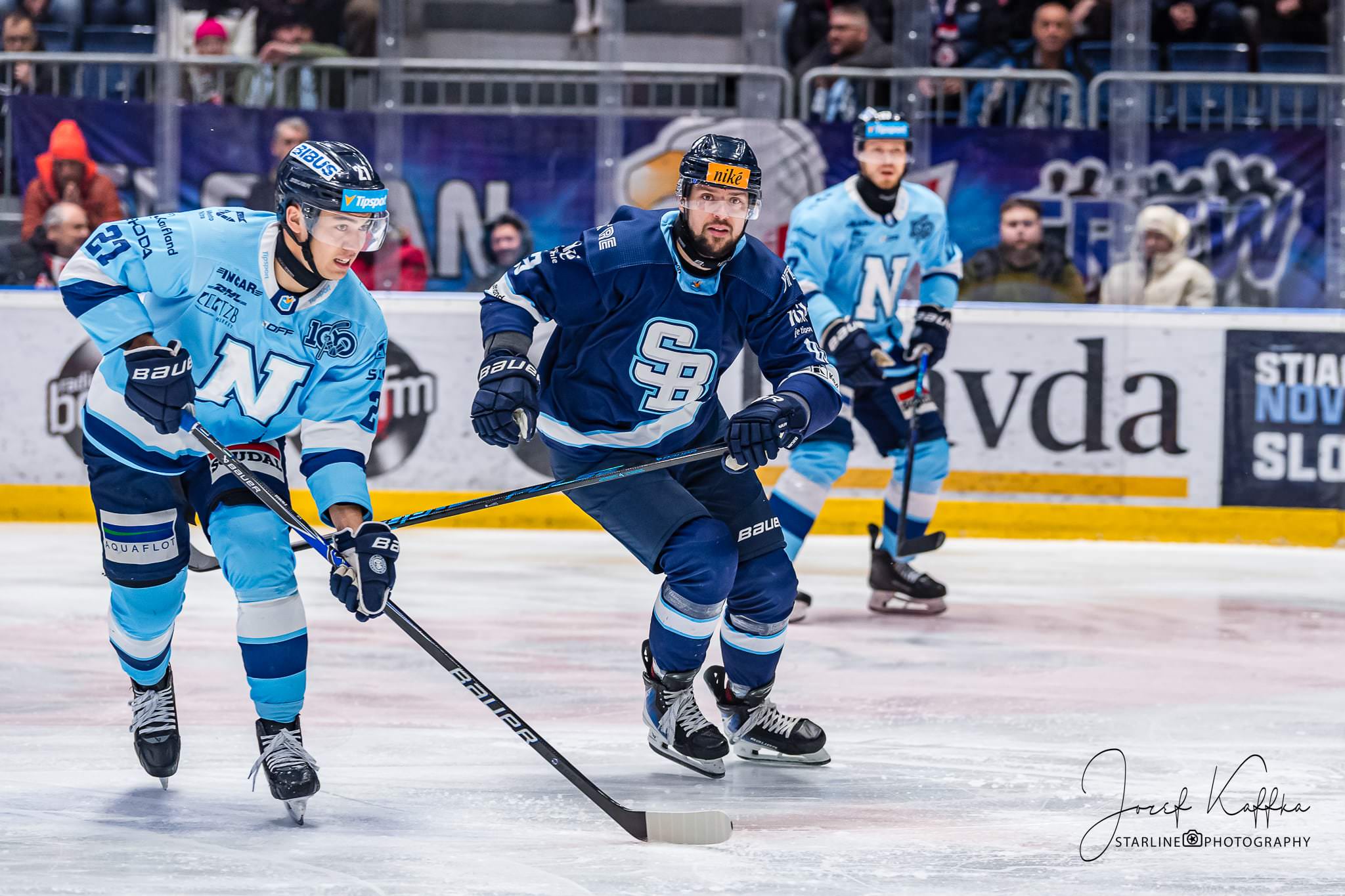 Nitra potvrdila výbornú formu a natiahla víťaznú sériu. Pre HC Slovan Bratislava to bola ďalšia náročná skúška v boji o prvé miesto, ktorú však belasí výsledkovo nezvládli. Napriek tomu malo stretnutie skvelú kulisu, tribúny sa zaplnili fanúšikmi Slovana aj Nitry a atmosféra bola hodná prívlastku šláger kola. Pre fotografa v Bratislave ide o ideálnu kombináciu – kvalitný extraligový hokej, silné emócie na ľade aj v hľadisku a množstvo dynamických momentov, ktoré sa dajú pretaviť do výrazných športových fotografií.