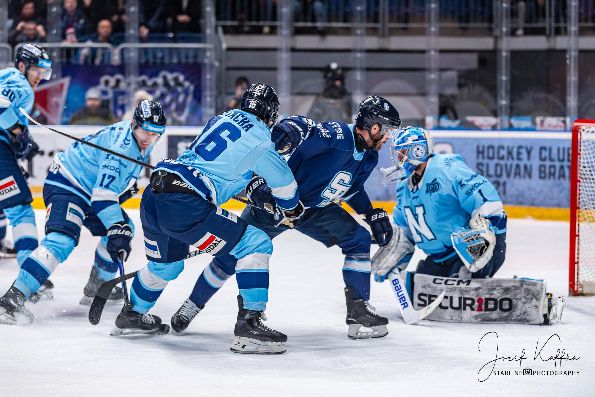 Zápas HC Slovan Bratislava – HK Nitra ponúkol veľa dynamických situácií – nájazdy do bránky, zákroky brankárov, tvrdé bodyčeky aj presilovkové kombinácie. Pre športovú fotografiu ide o ideálnu príležitosť spojiť technické zručnosti, rýchle reakcie a cit pre okamih tak, aby výsledné snímky čo najlepšie vystihli atmosféru večera v bratislavskej aréne.