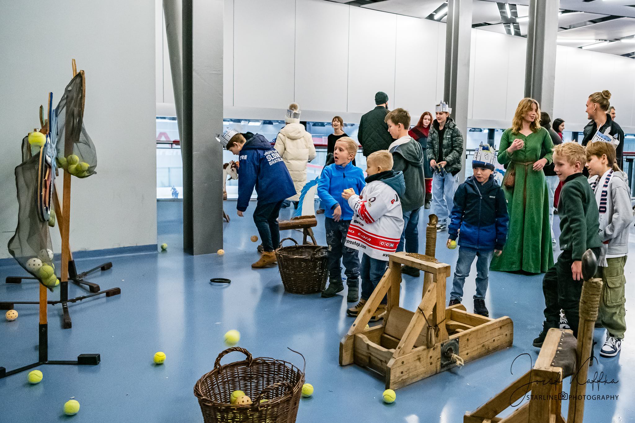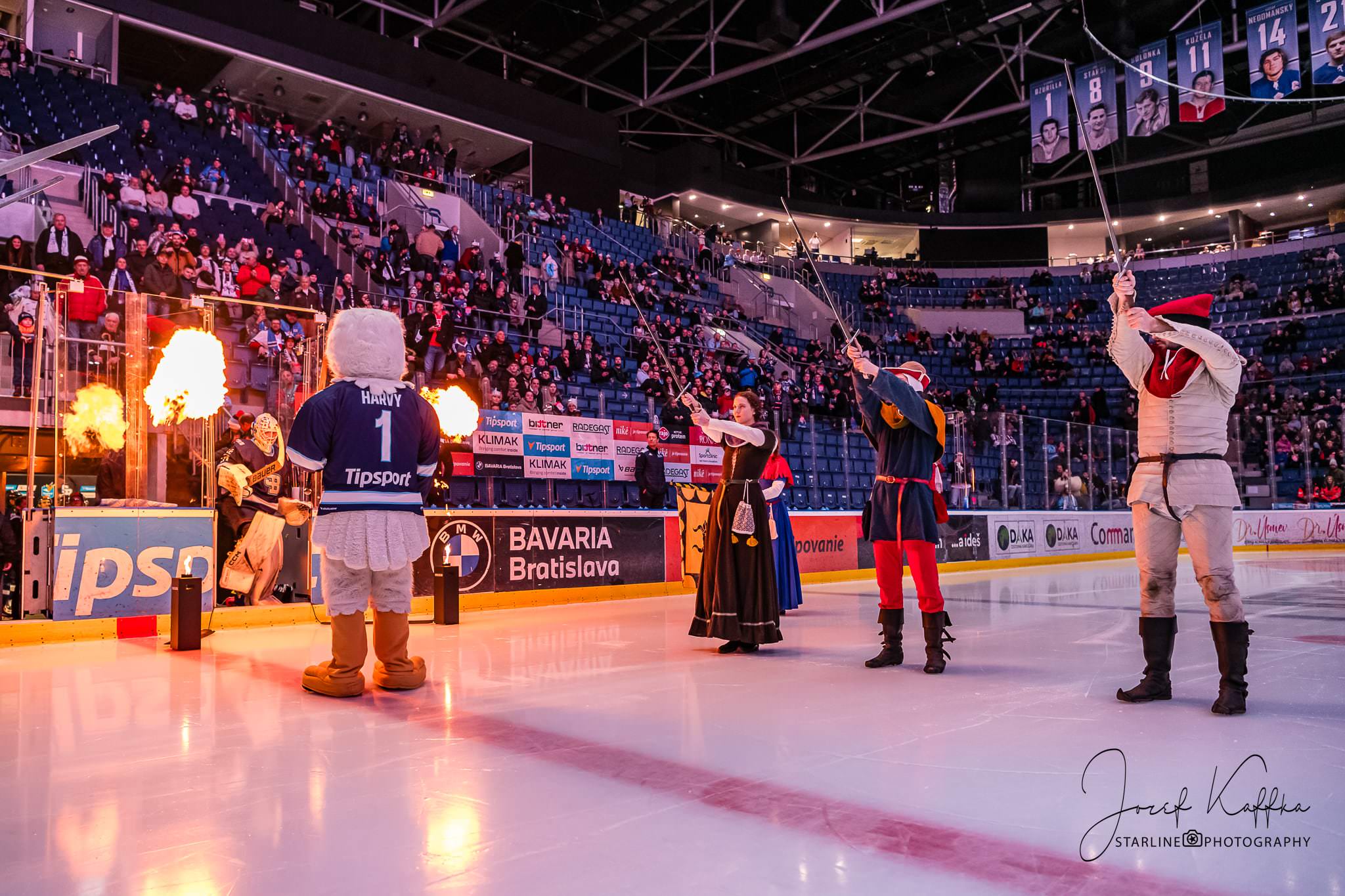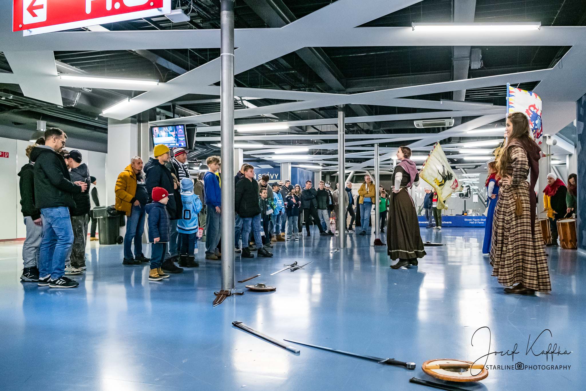 Sprievodnou akciou večera bola aktivita „Môj dom – môj hrad“, ktorá prilákala rodiny a fanúšikov všetkých vekových kategórií a obohatila hokejový zážitok o interaktívne zážitky mimo ľadu. Pre fotografa boli práve takéto momenty ideálne na zachytenie spontánnych emócií, úsmevov a radosti návštevníkov.