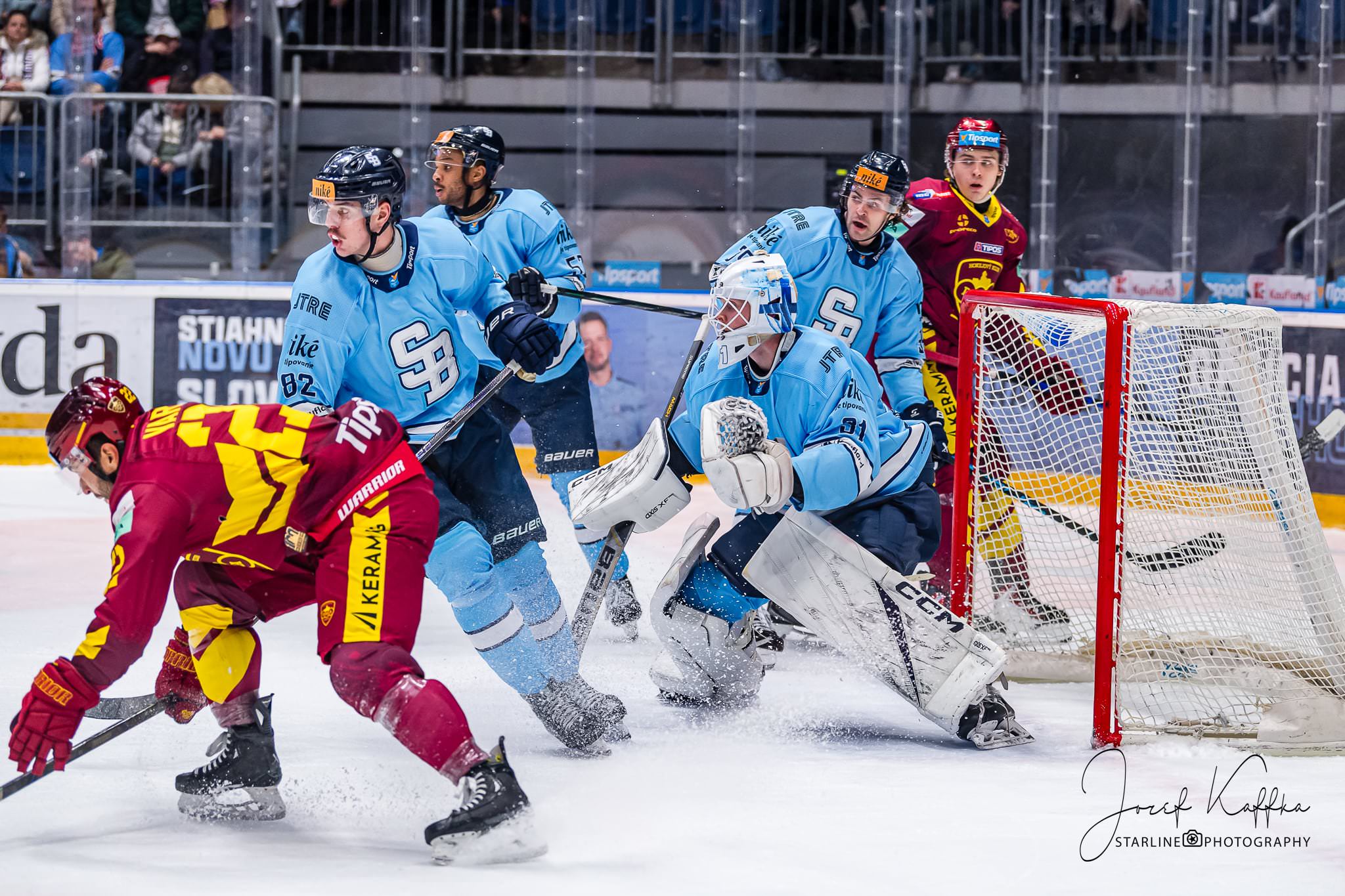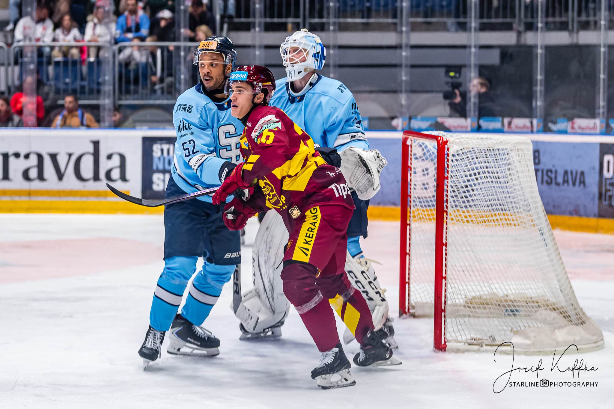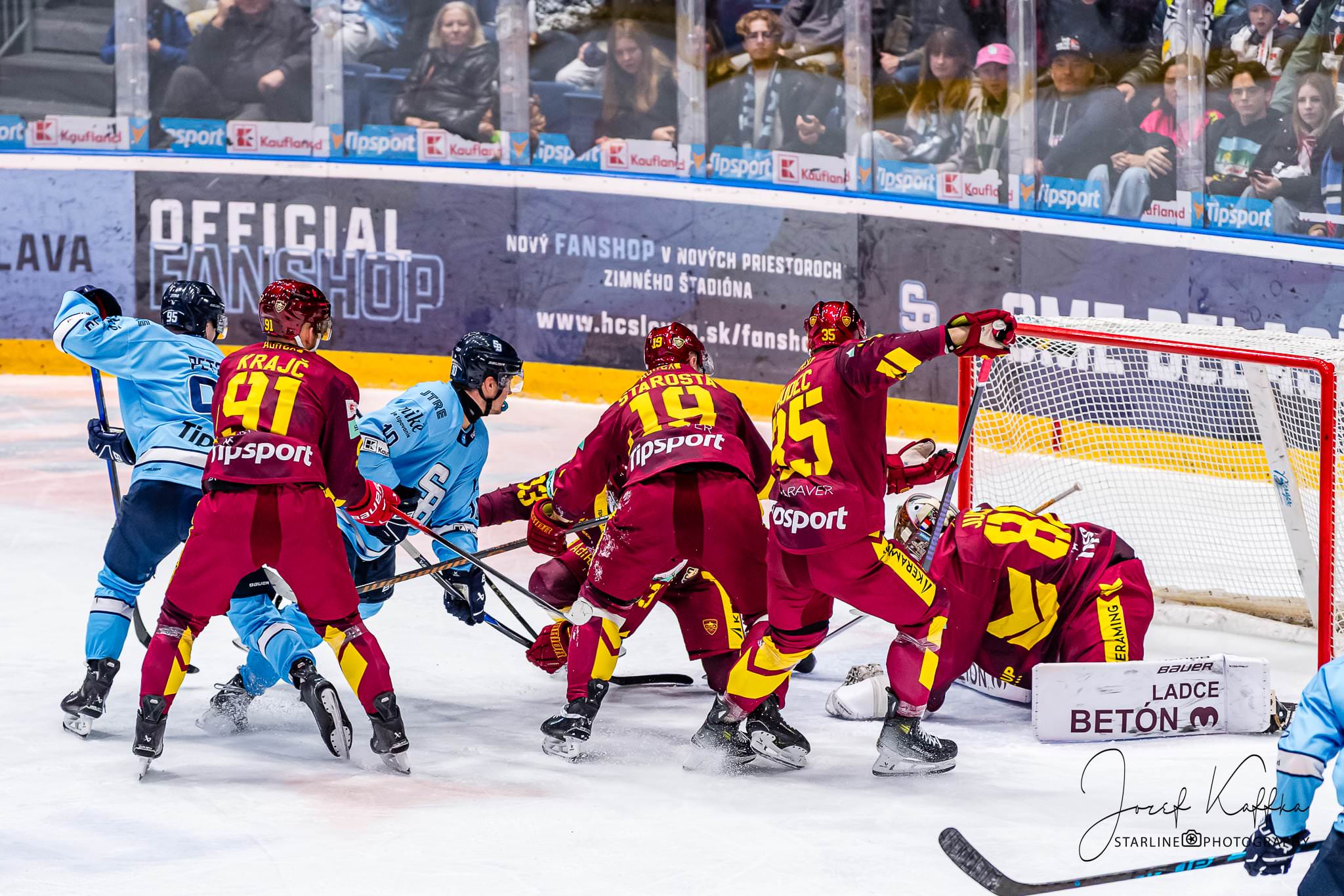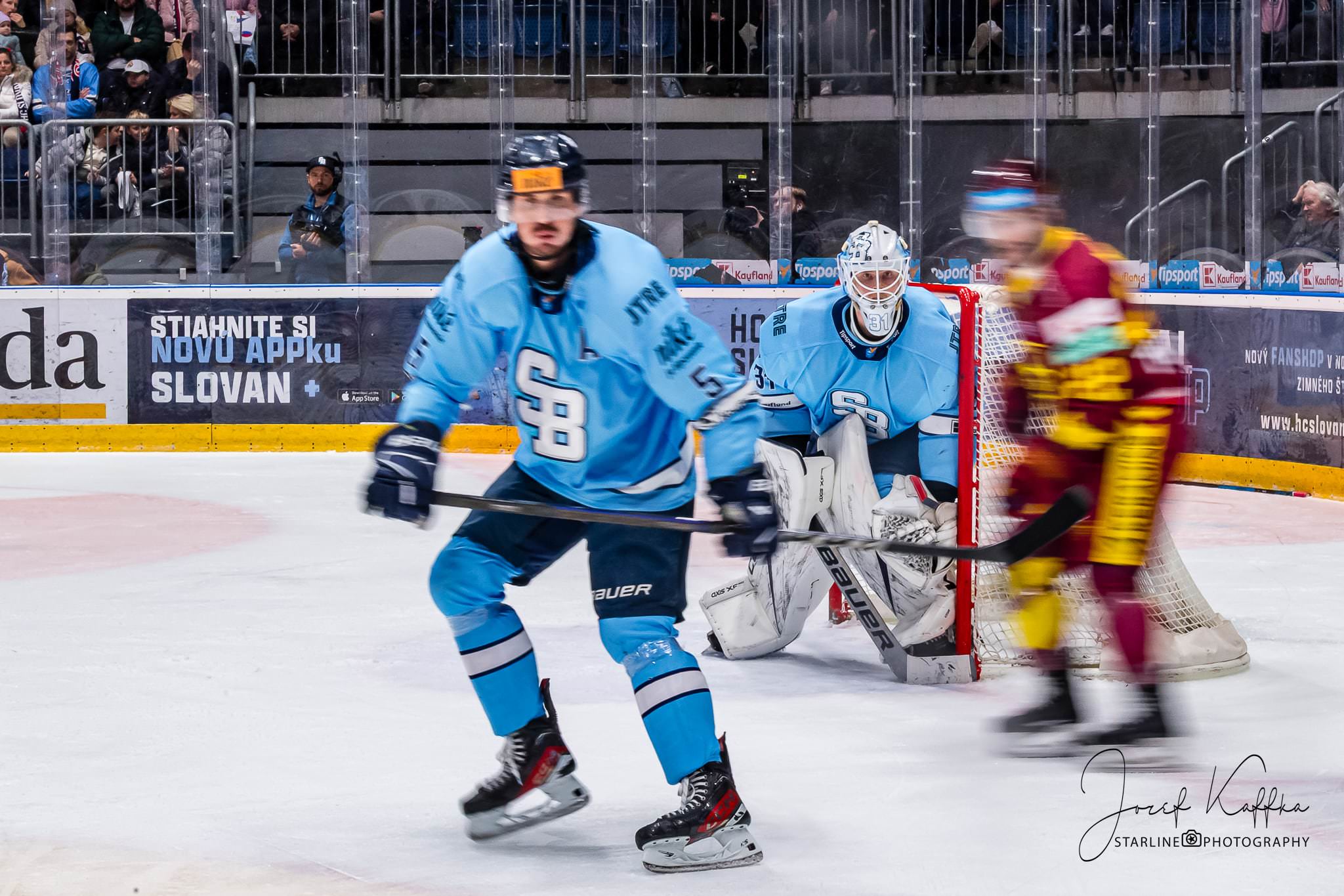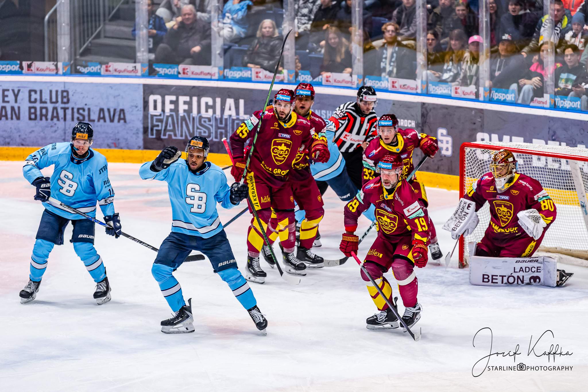 Z pohľadu fotografa bolo včerajšie stretnutie na Zimnom štadióne Ondreja Nepelu vizuálne bohaté – od dramatických súbojov v rohoch klziska až po emotívne oslavy hosťujúcich hráčov. Prvé dve tretiny sa niesli v defenzívnom duchu, no Trenčín sa dokázal presadiť až dvakrát a vytvoriť si pohodlný náskok. Bránka v prvej tretine od Hudeca, neskôr druhý gól po peknej akcii Šišku, a v tretej tretine ďalšie dva presné zásahy Trenčínu – to boli momenty, ktoré stáli za zapamätanie aj objektívom.