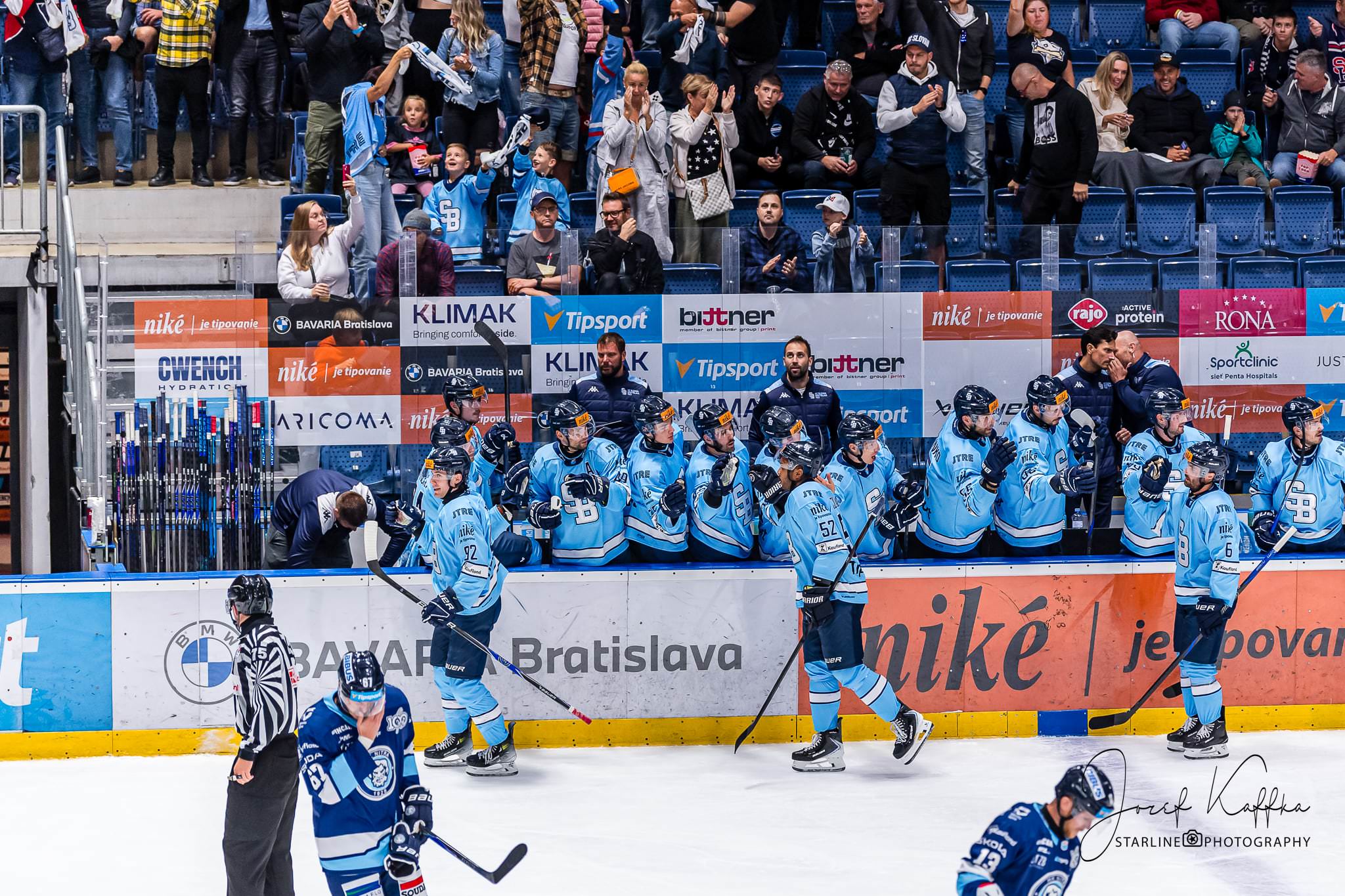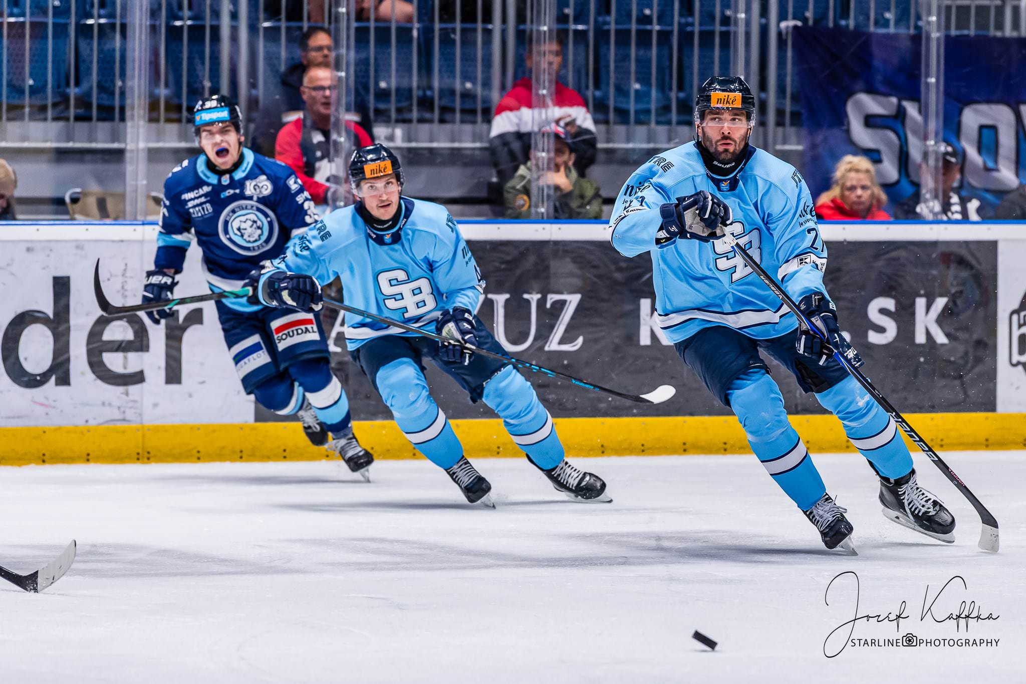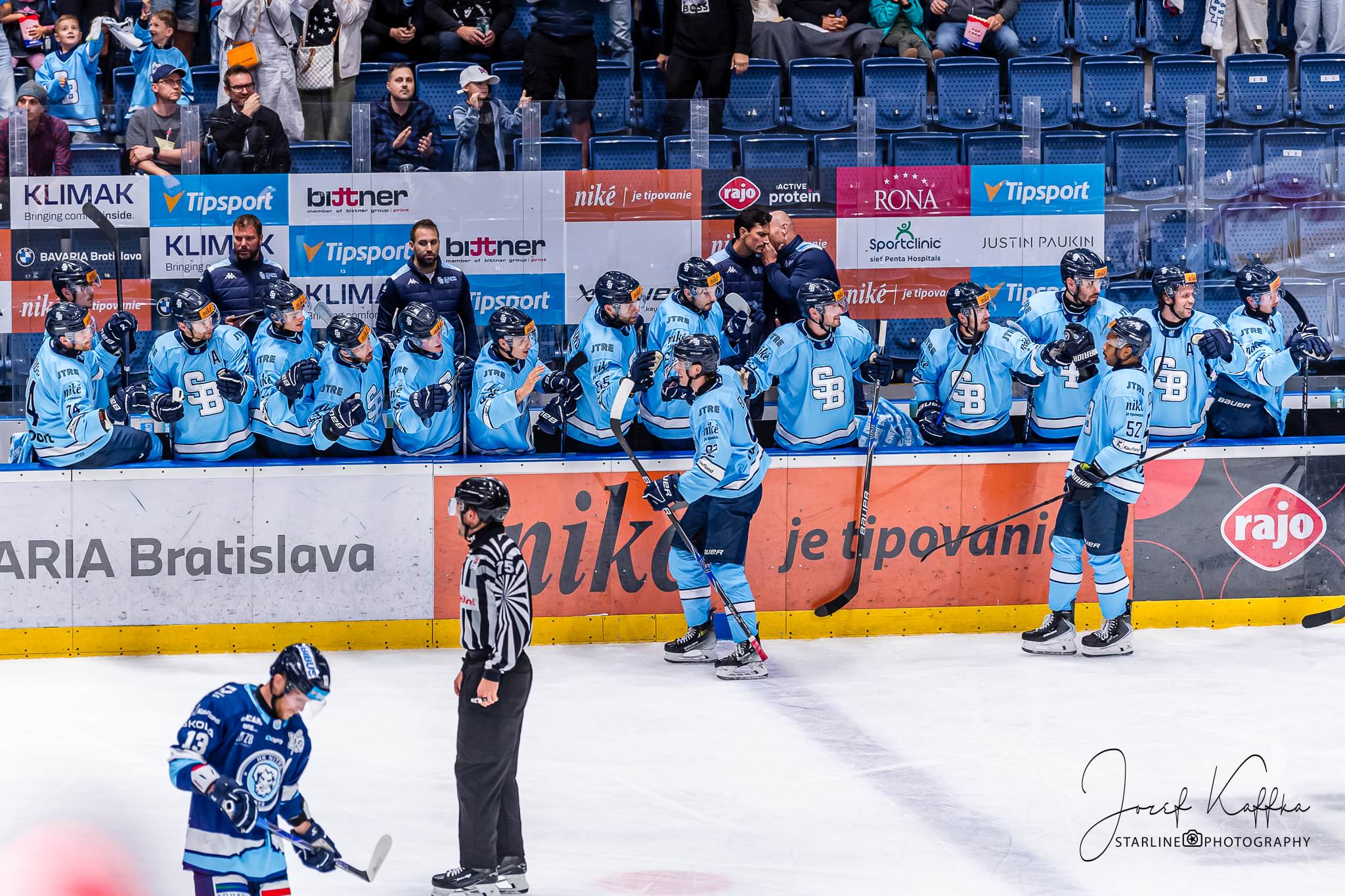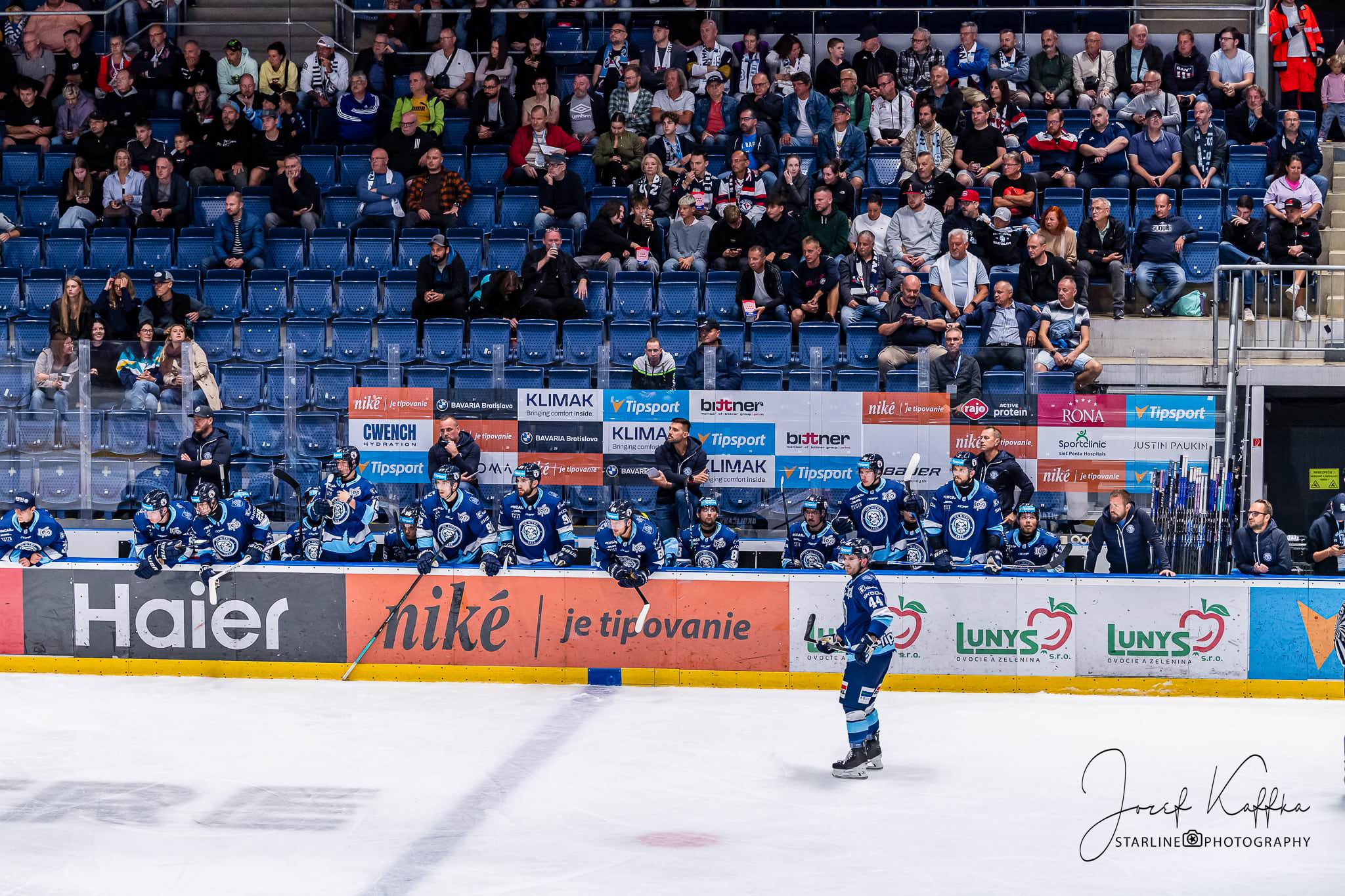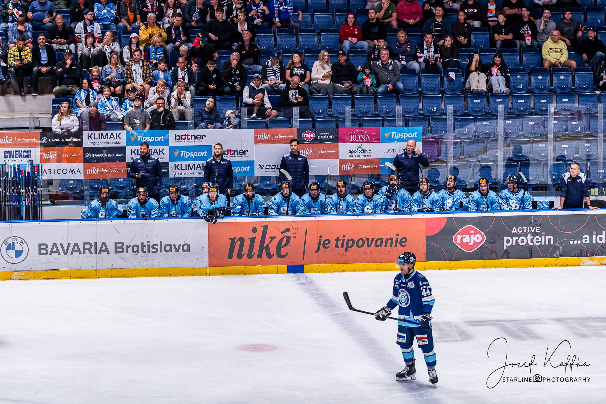 Opäť som mal možnosť nafotiť ako fotograf v Bratislave hokejový zápas. Tentokrát kde HC Slovan Bratislava síce v 3. kole Tipsport ligy podľahol Nitre 3:4 po predĺžení, no ukázal, že aj zdanlivo stratený zápas vie otočiť vo svoj prospech. Belasí po úvodnej tretine prehrávali už 0:3, no nezlomná vôľa a obrovská energia im priniesli vyrovnanie a cenný bod do tabuľky.