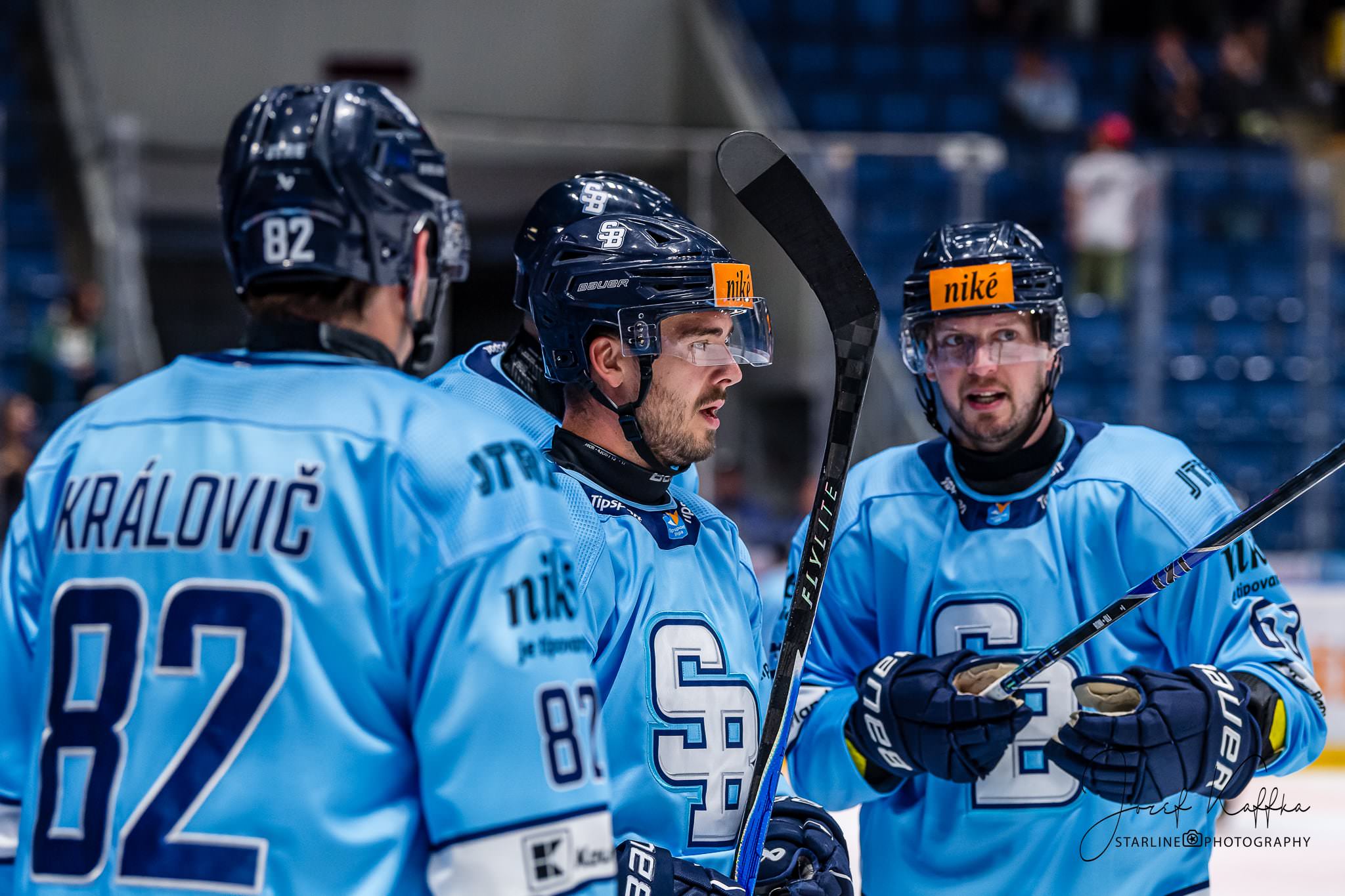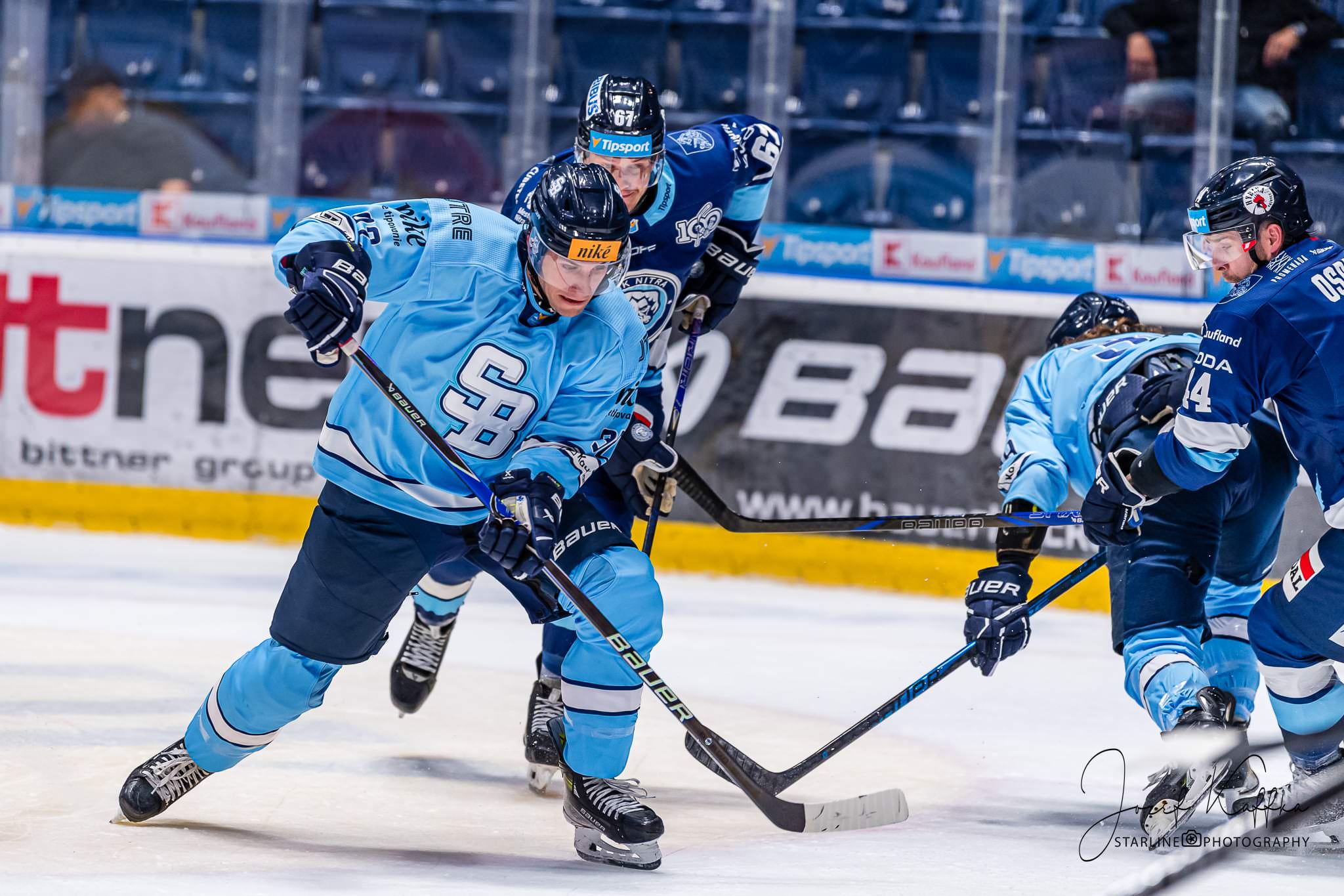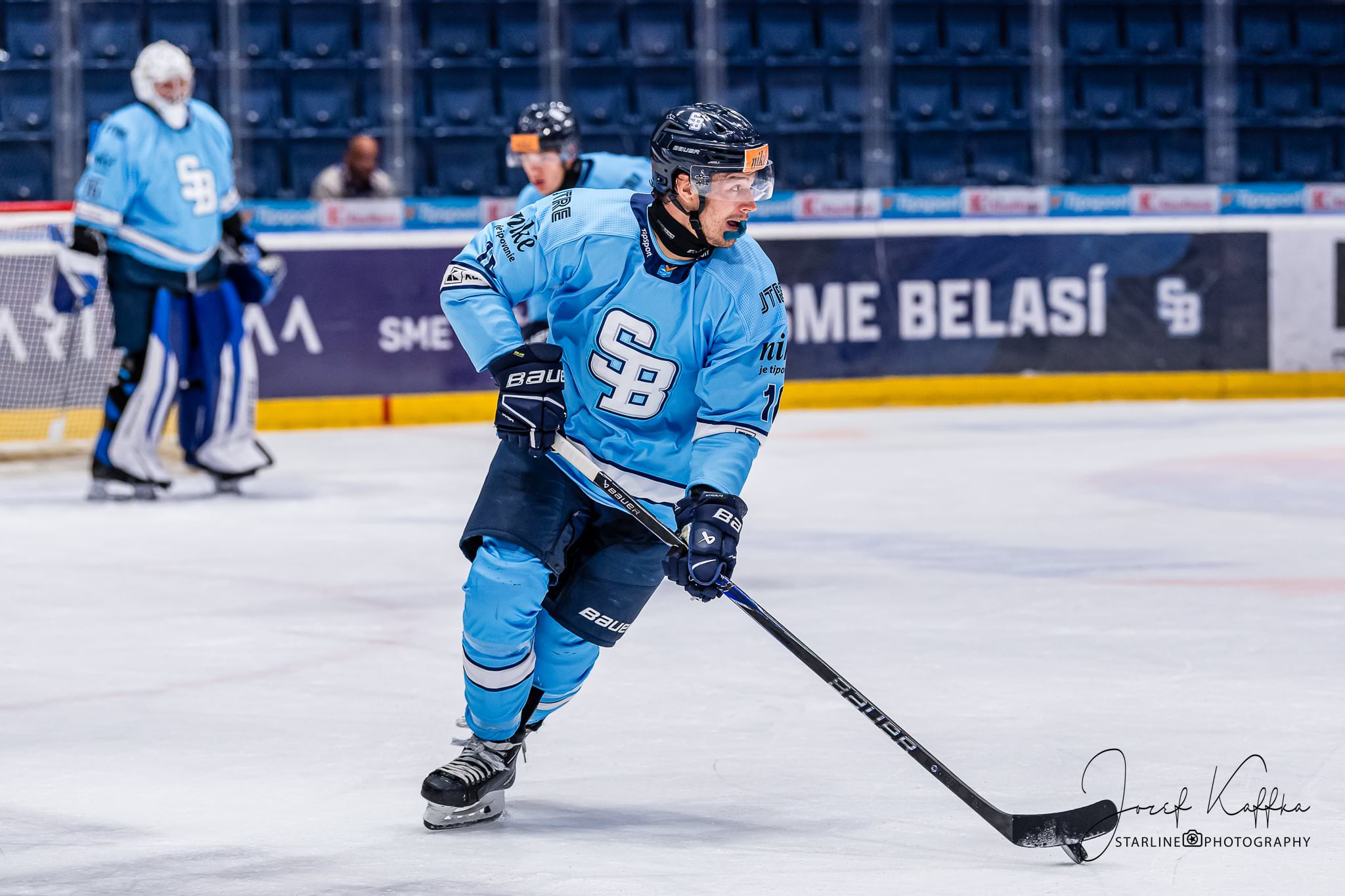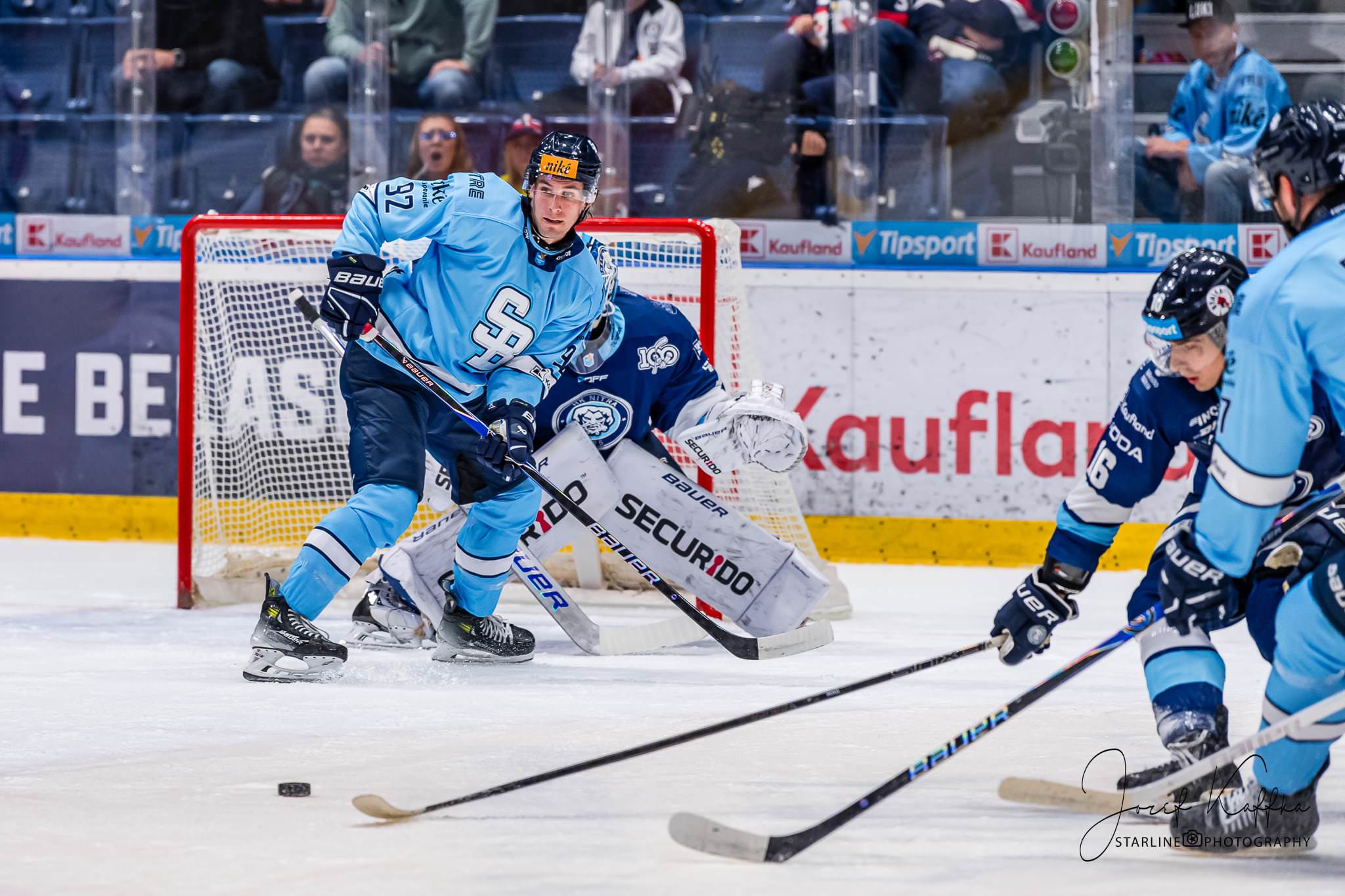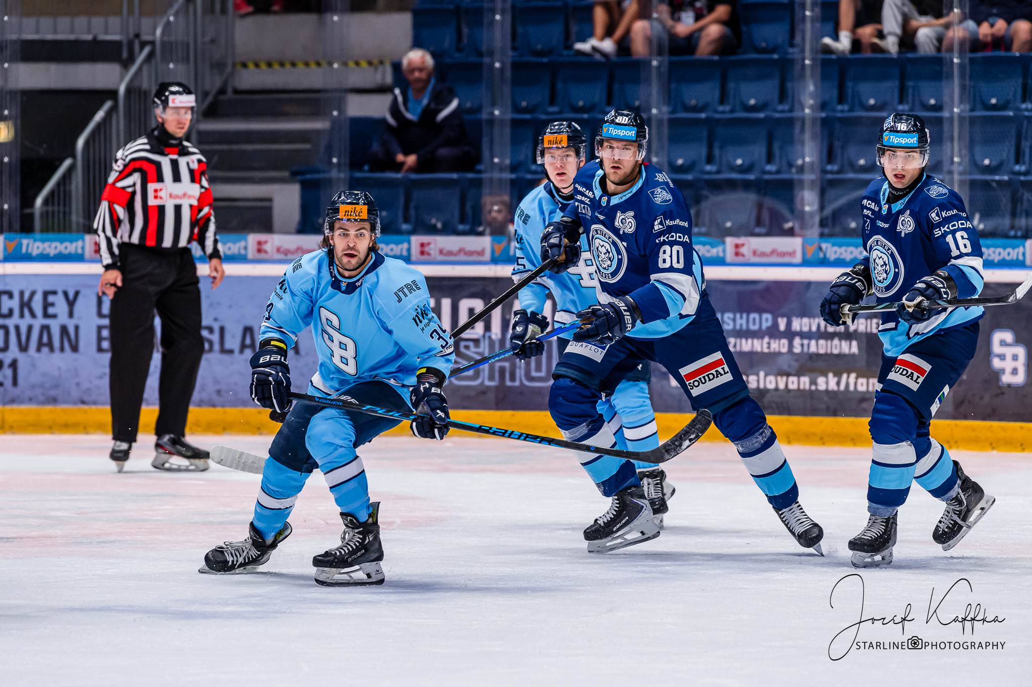 Opäť som mal možnosť nafotiť ako fotograf v Bratislave hokejový zápas. Tentokrát kde HC Slovan Bratislava síce v 3. kole Tipsport ligy podľahol Nitre 3:4 po predĺžení, no ukázal, že aj zdanlivo stratený zápas vie otočiť vo svoj prospech. Belasí po úvodnej tretine prehrávali už 0:3, no nezlomná vôľa a obrovská energia im priniesli vyrovnanie a cenný bod do tabuľky.