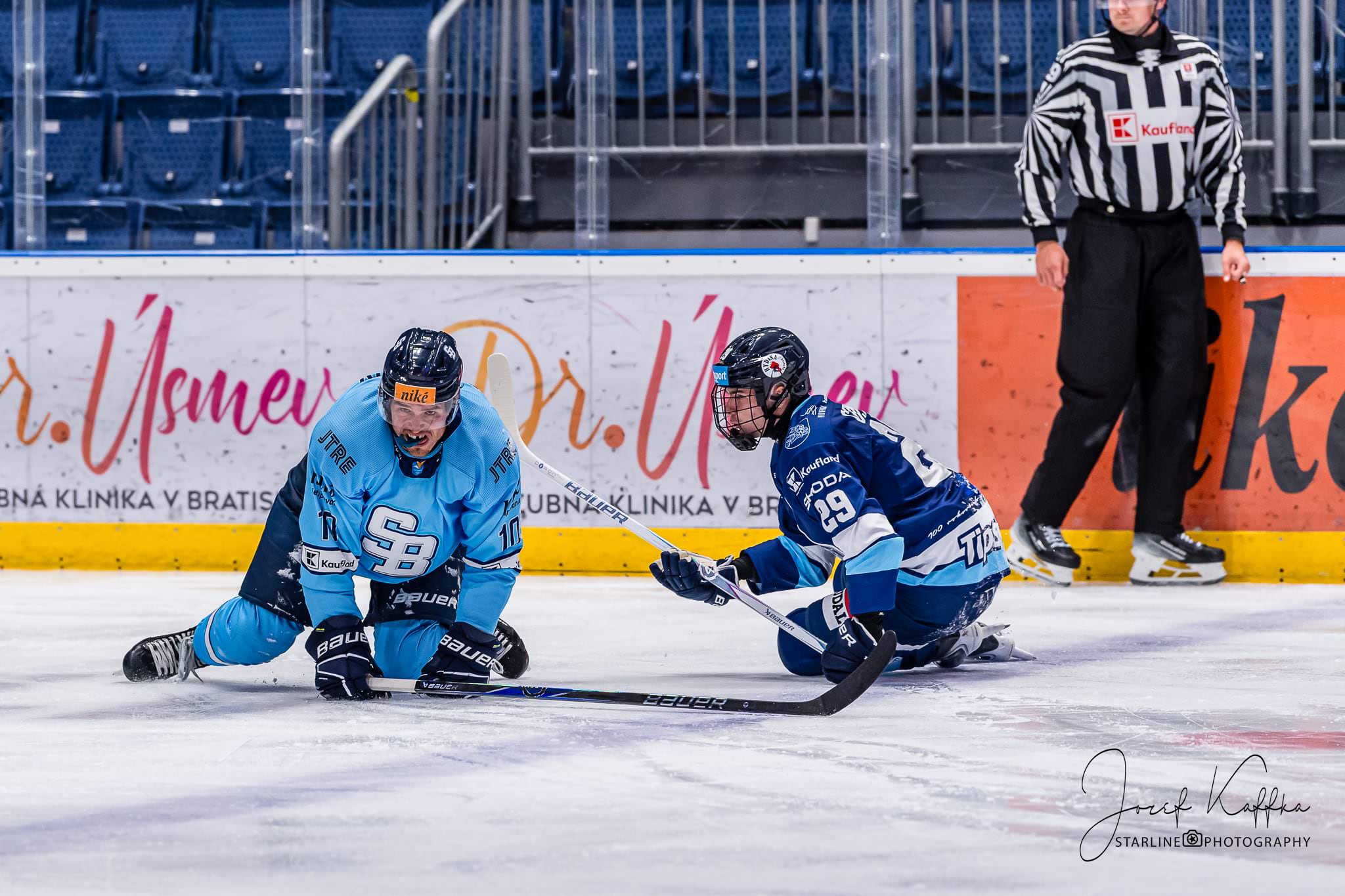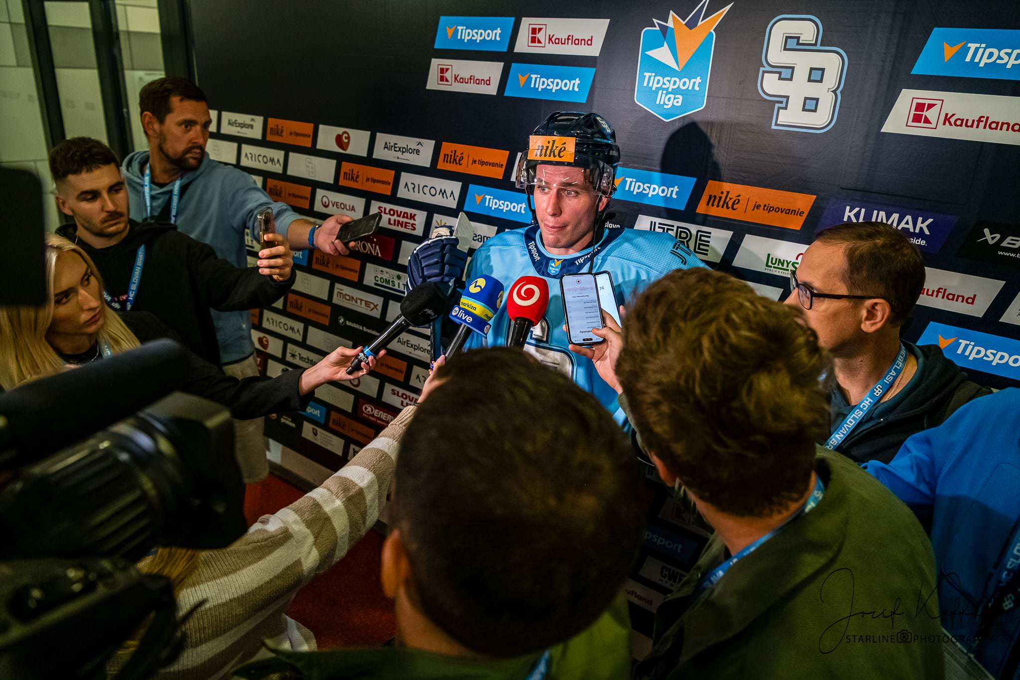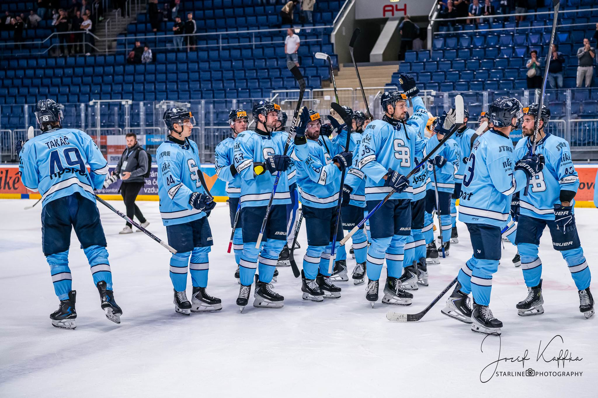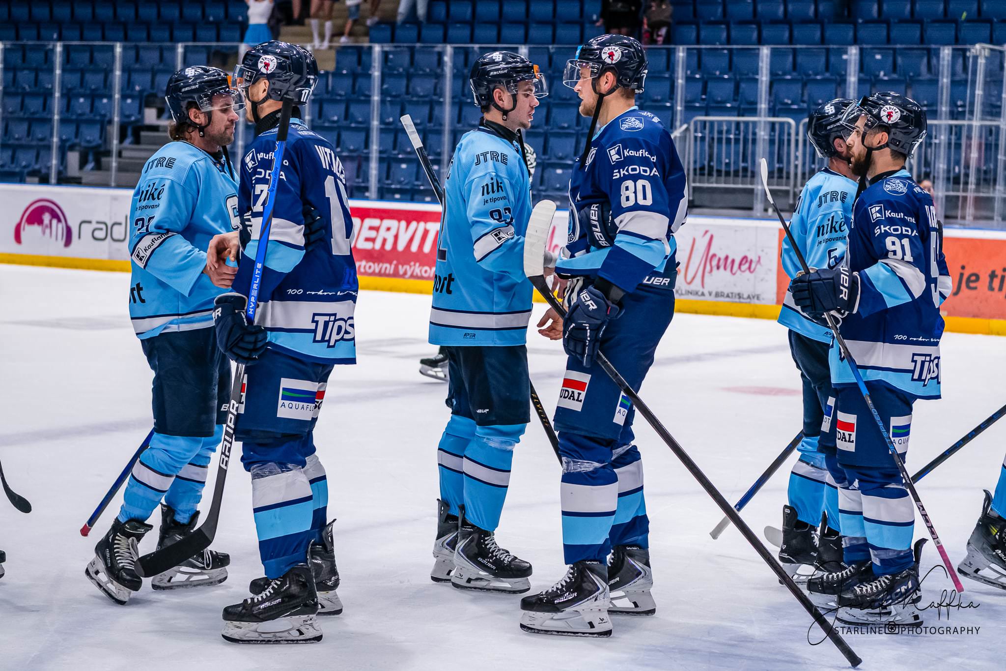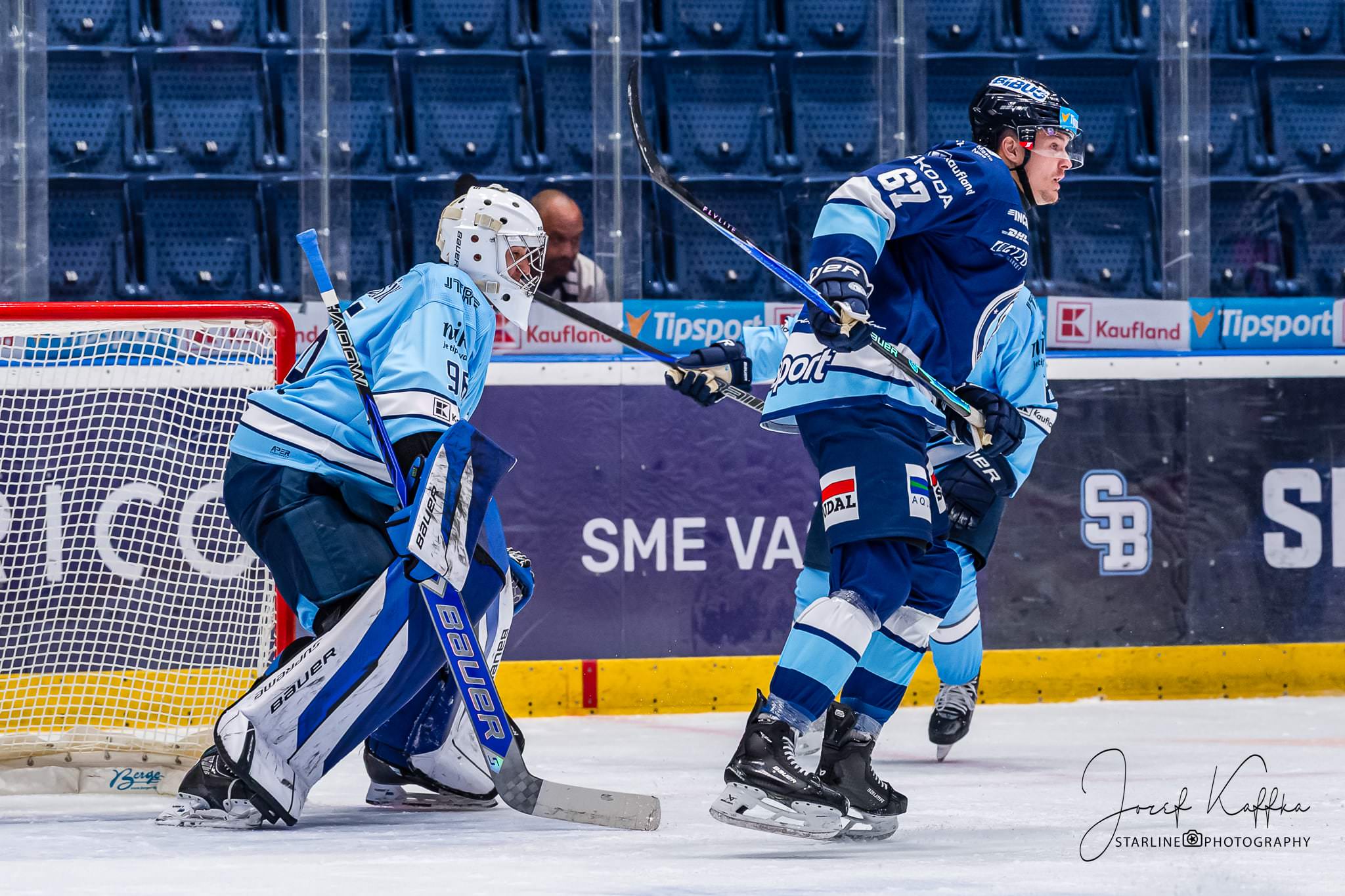 Opäť som mal možnosť nafotiť ako fotograf v Bratislave hokejový zápas. Tentokrát kde HC Slovan Bratislava síce v 3. kole Tipsport ligy podľahol Nitre 3:4 po predĺžení, no ukázal, že aj zdanlivo stratený zápas vie otočiť vo svoj prospech. Belasí po úvodnej tretine prehrávali už 0:3, no nezlomná vôľa a obrovská energia im priniesli vyrovnanie a cenný bod do tabuľky.